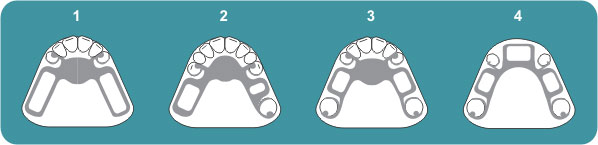 - Três áreas desdentadas com dentes suportes anteriores e posteriores às selas (Fig. 4).