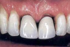 Homem, 52 anos, que recebeu, há 10 anos, coroas metalocerâmicas sobre núcleos de ouro. As coroas metalocerâmicas foram substituídas por coroas em Procera AllCeram.