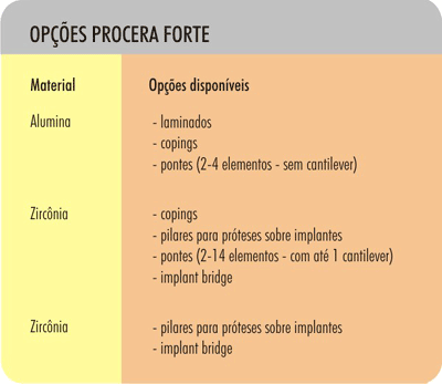 O sistema Procera oferece uma ampla gama de materiais