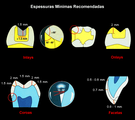 Labial, lingual e interproximal: 1 a 1,5 mm